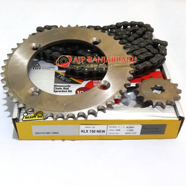 Pengiriman cepat Pembayaran 100 aman. Gear Set SSS Kawasaki KLX 150 - D Tracker Rantai SSS Tipe HSB 130L. Rp 20500000 2011 Jual KLX 150 S Tahun 2011.